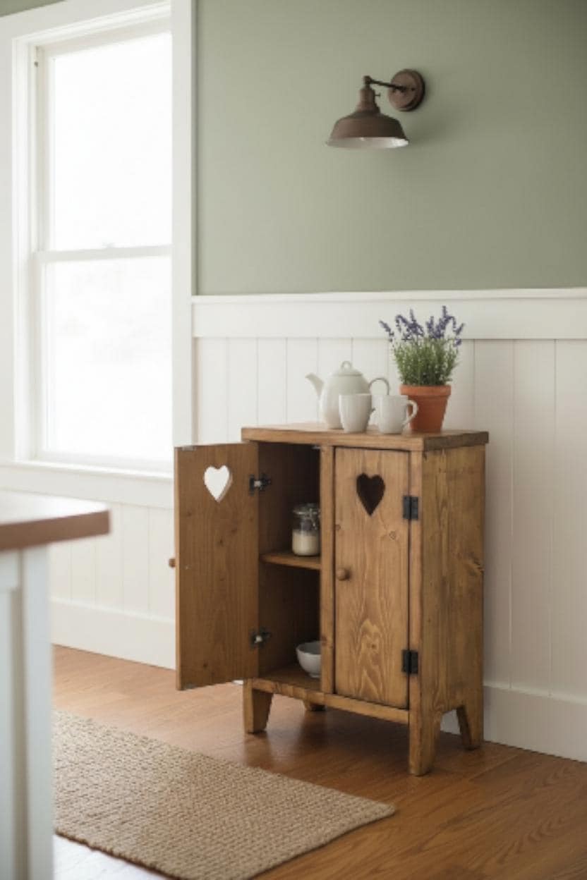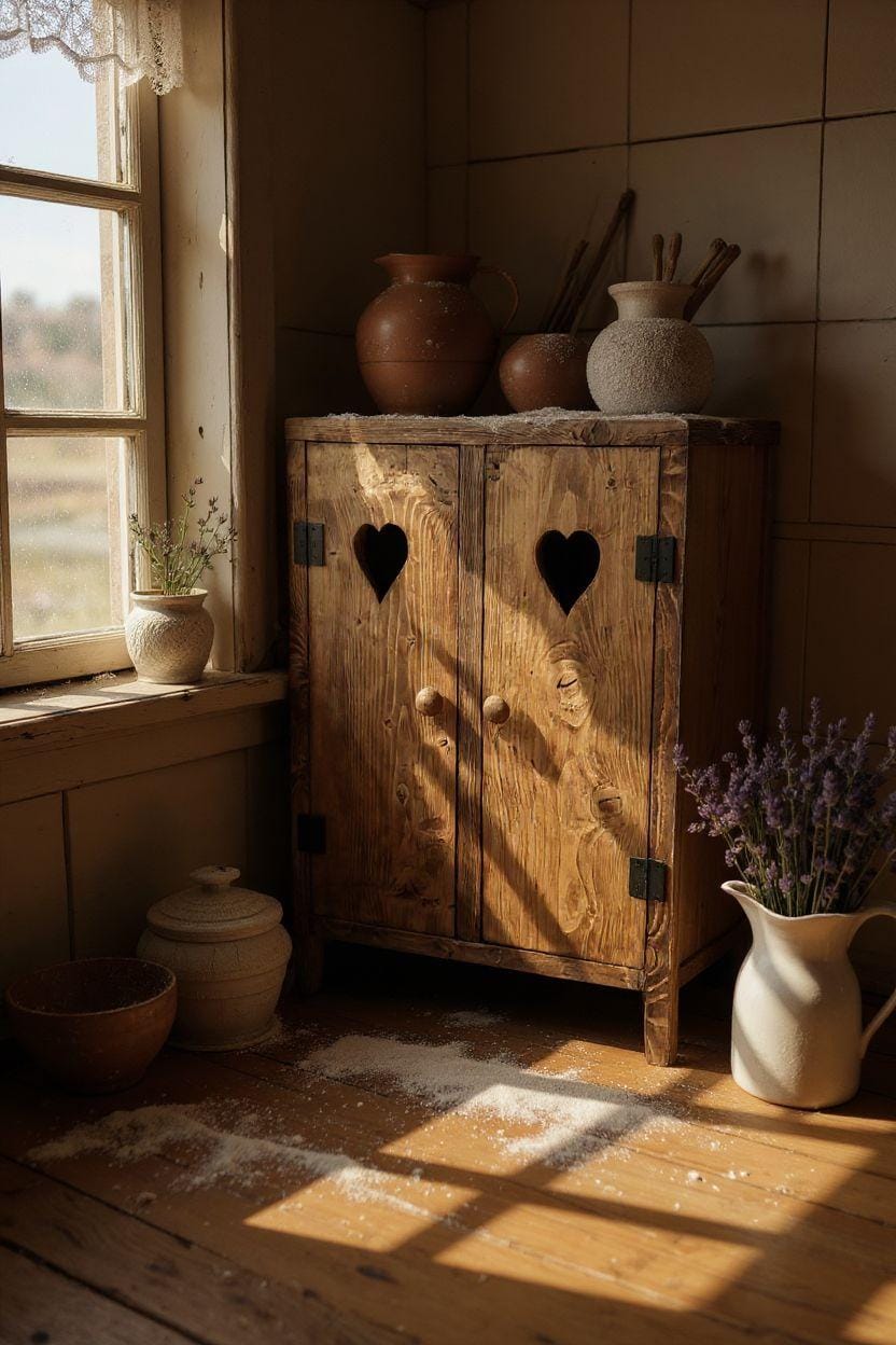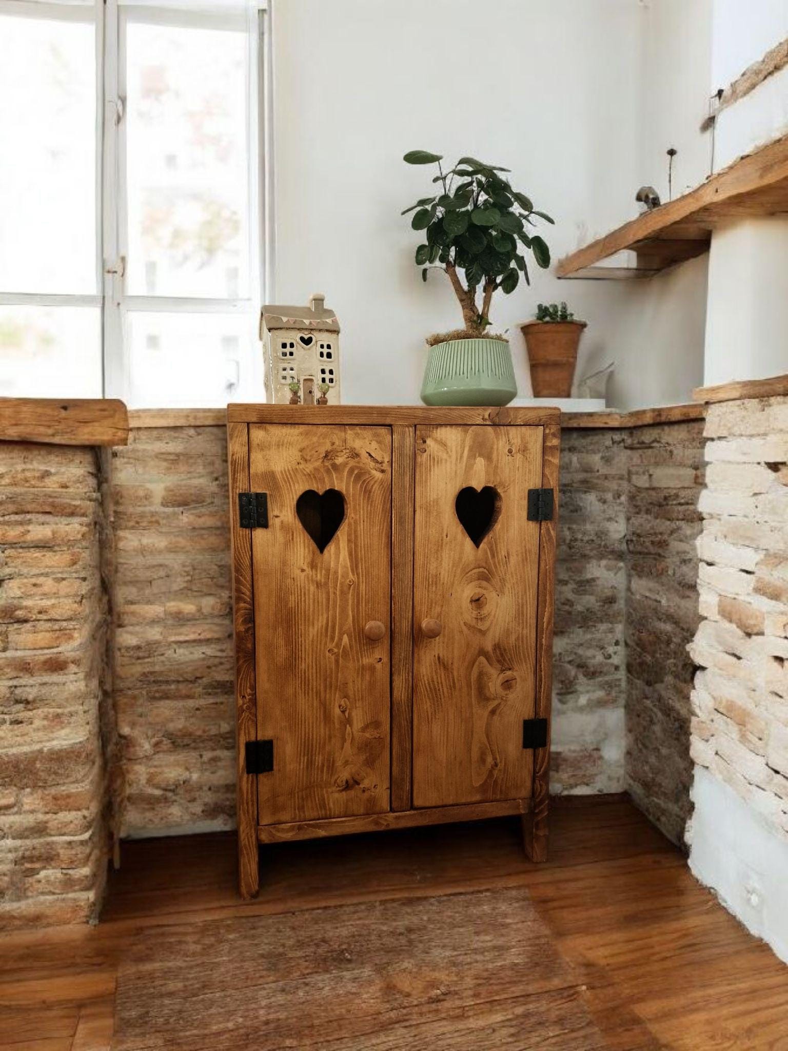 Ideal as a hallway cabinet, pantry cupboard, or rustic storage unit.