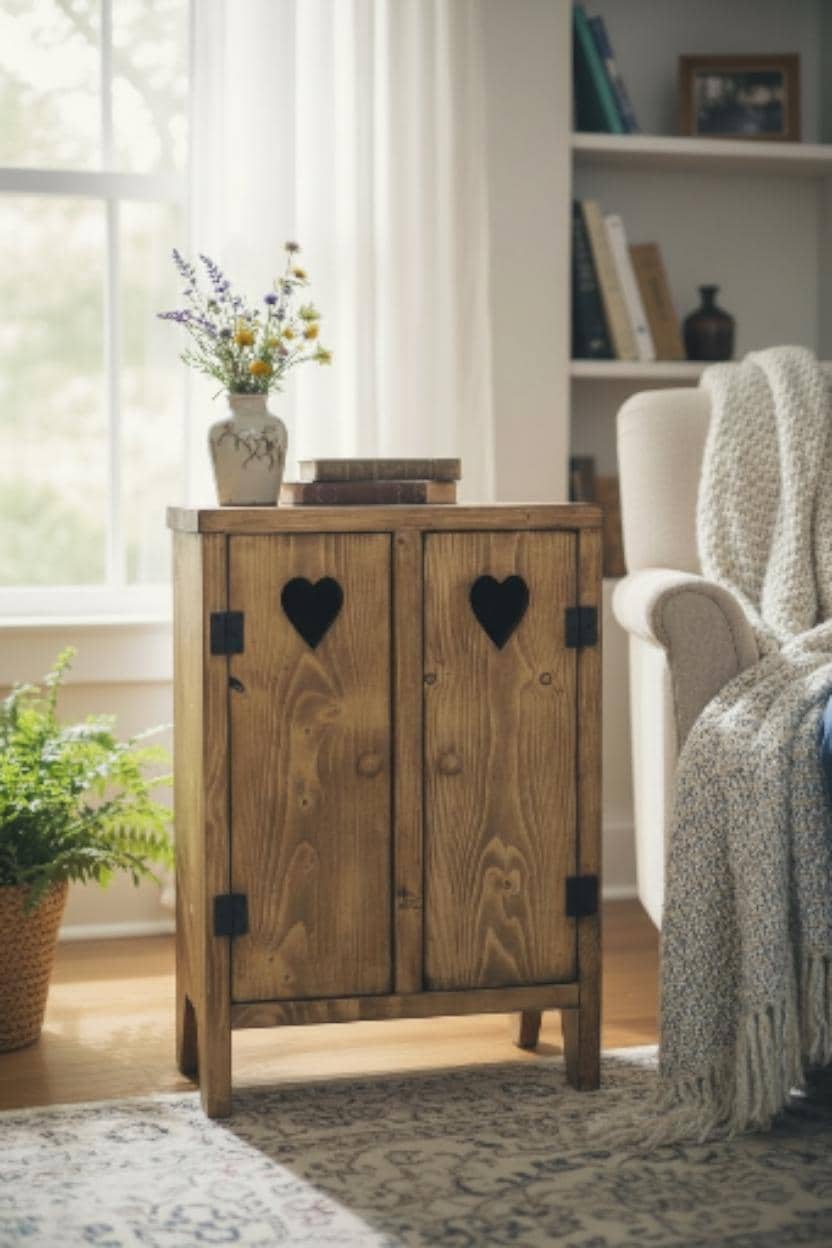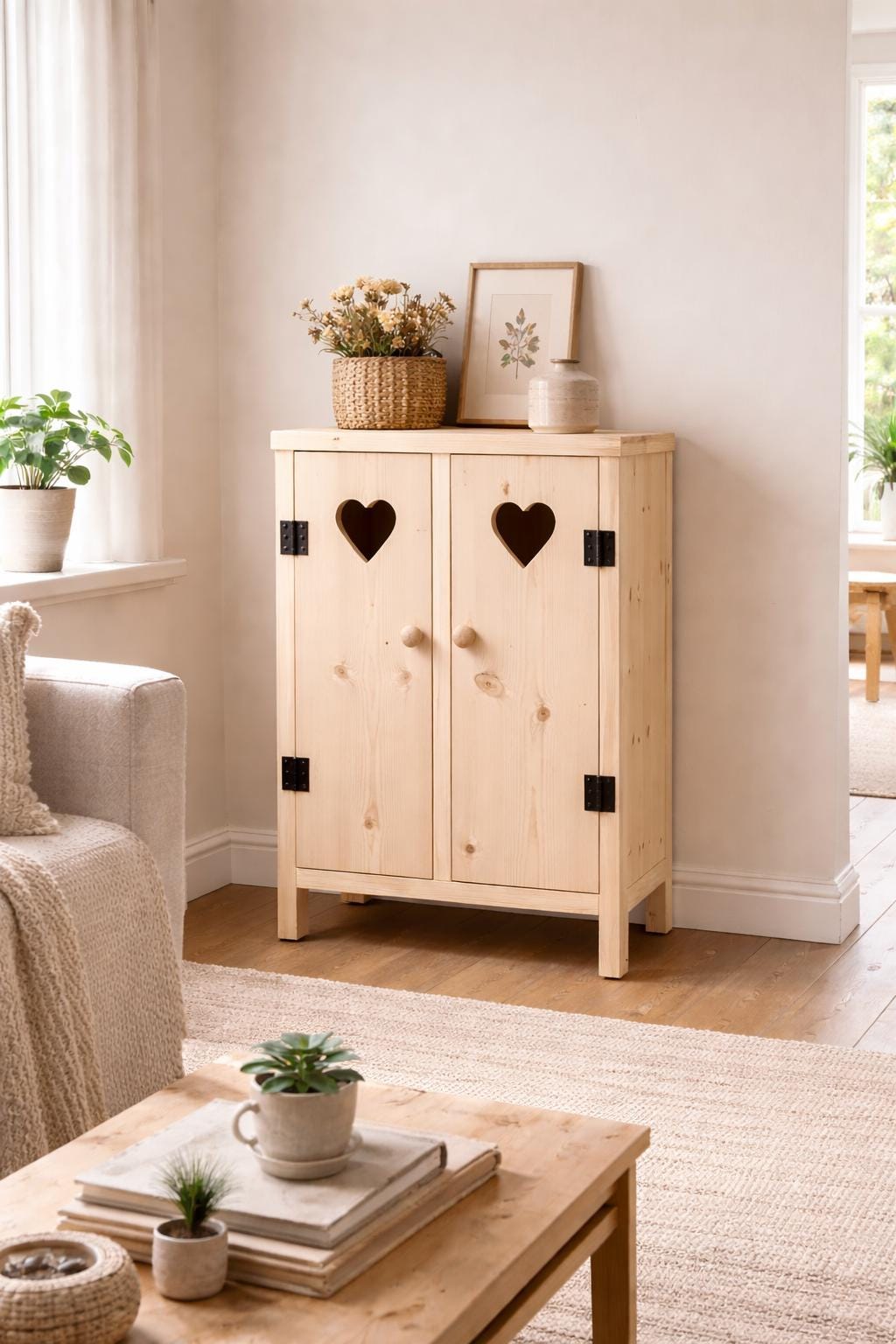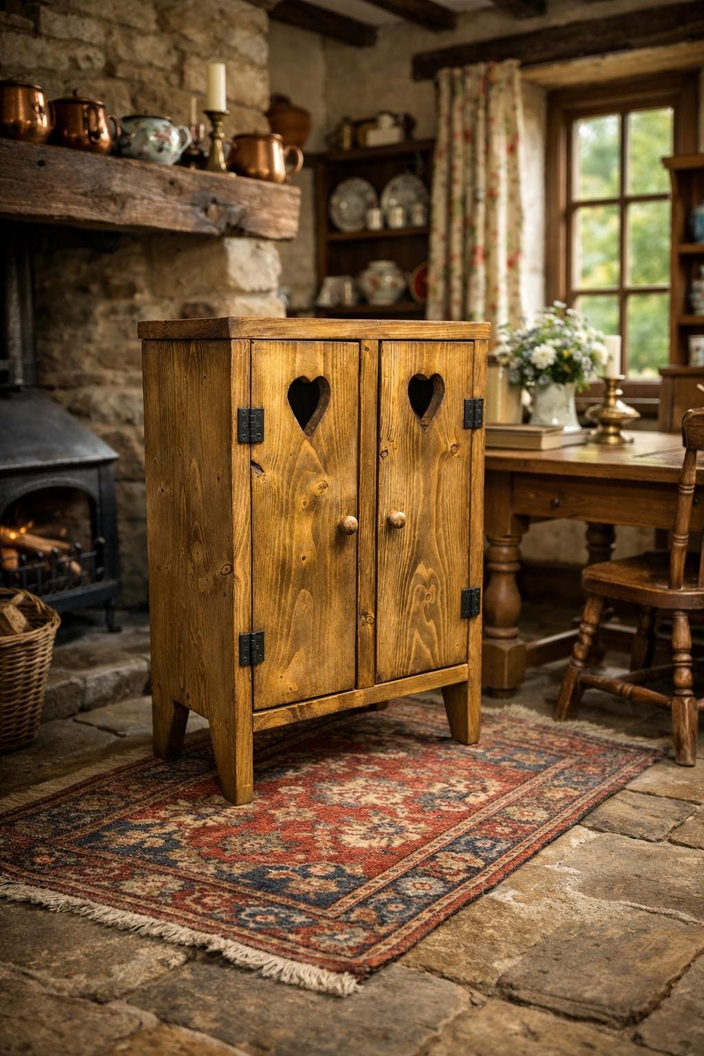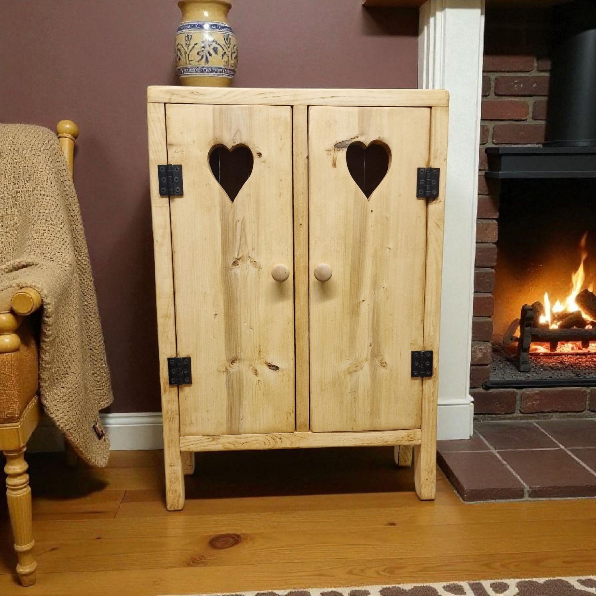 Add warmth and practical storage to your home with this handmade rustic slimline cabinet, crafted from reclaimed solid pine in my Derbyshire workshop.
