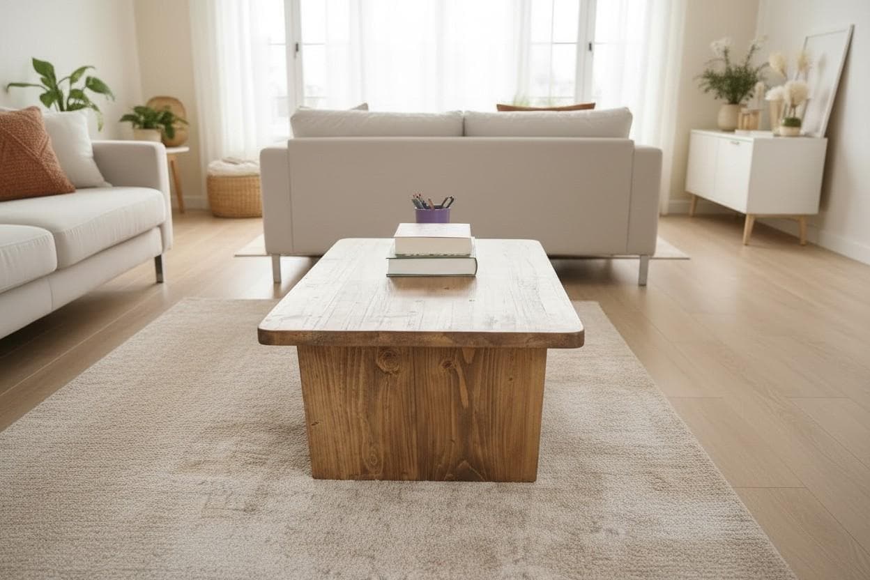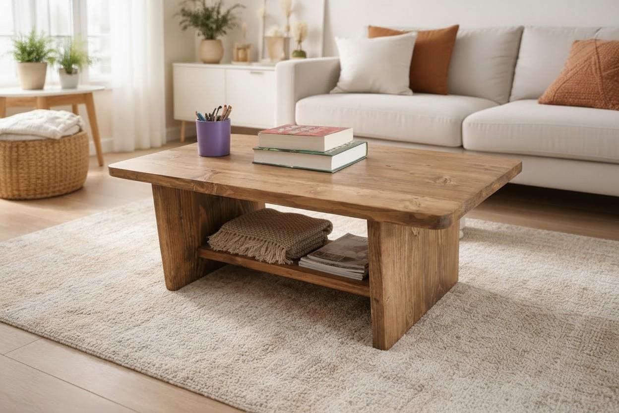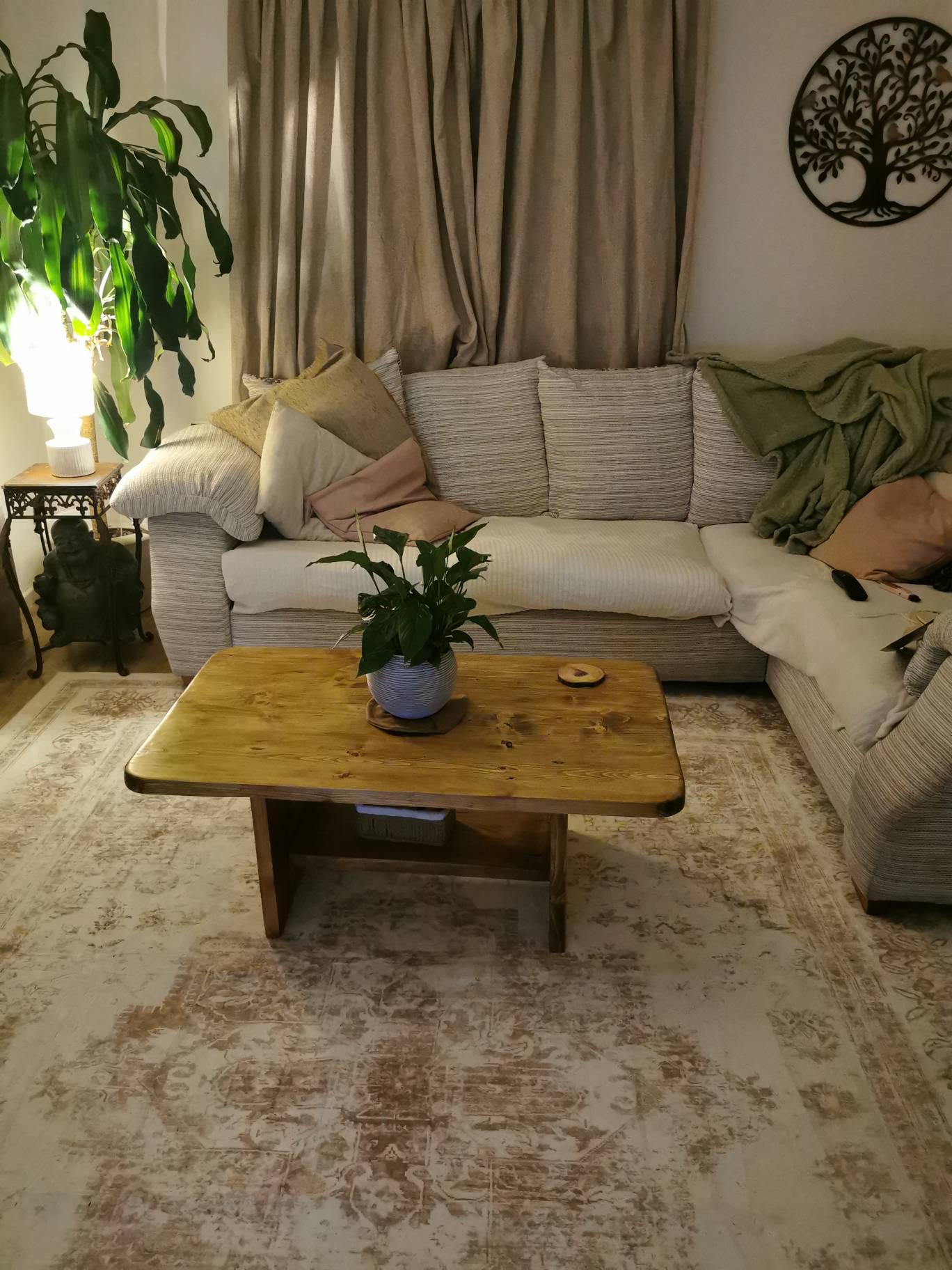 Bring warmth and character into your living space with this handmade solid wood coffee table.