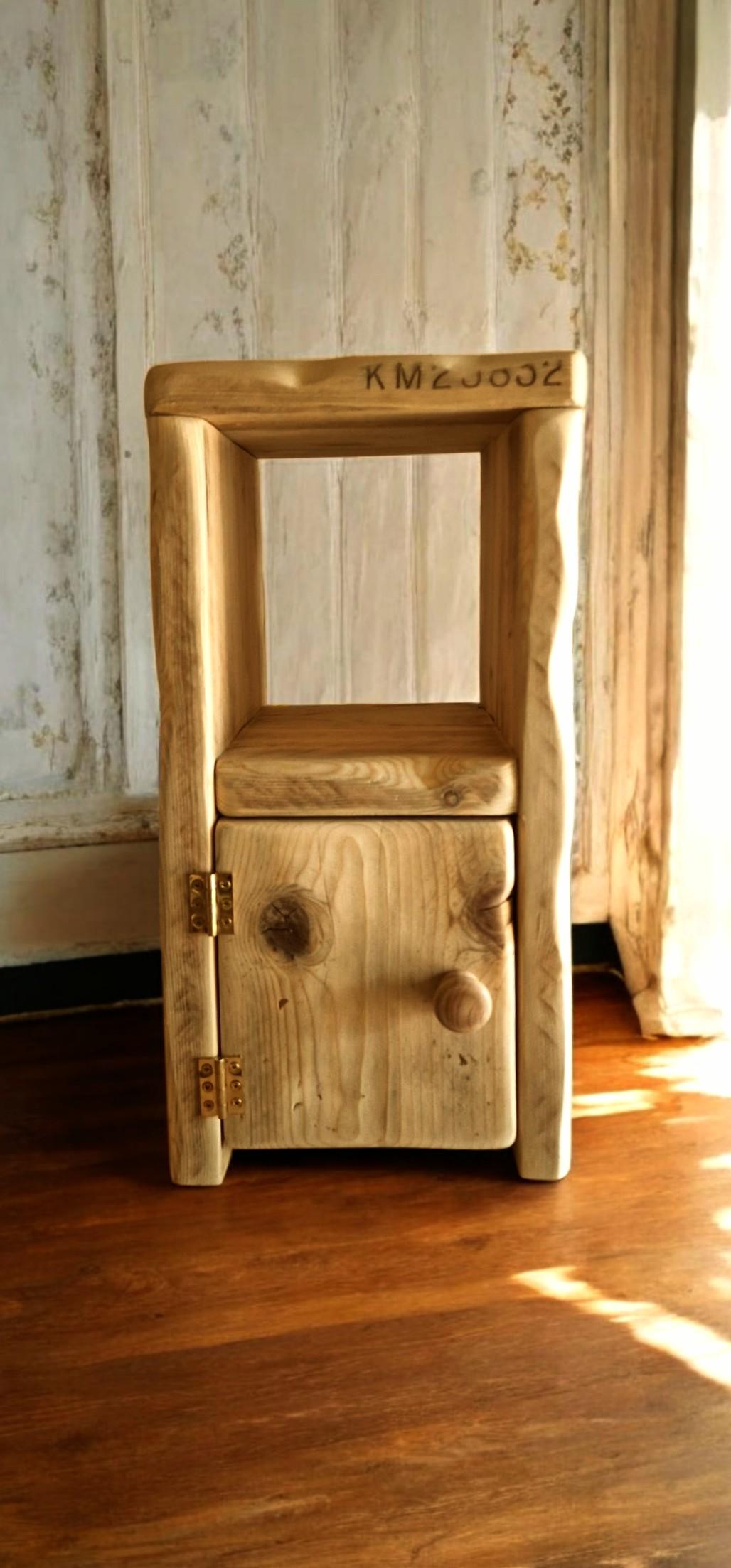 Handmade Rustic Shabby Chic Bedside Cabinet – A unique nightstand made from reclaimed scaffold boards, full of rustic charm and industrial character. Perfect for use as a bedside table, storage cabinet, or side table in the bedroom, living room, or bathroom. Each piece is carefully handmade in the UK, making it a sustainable and one-of-a-kind addition to your home.