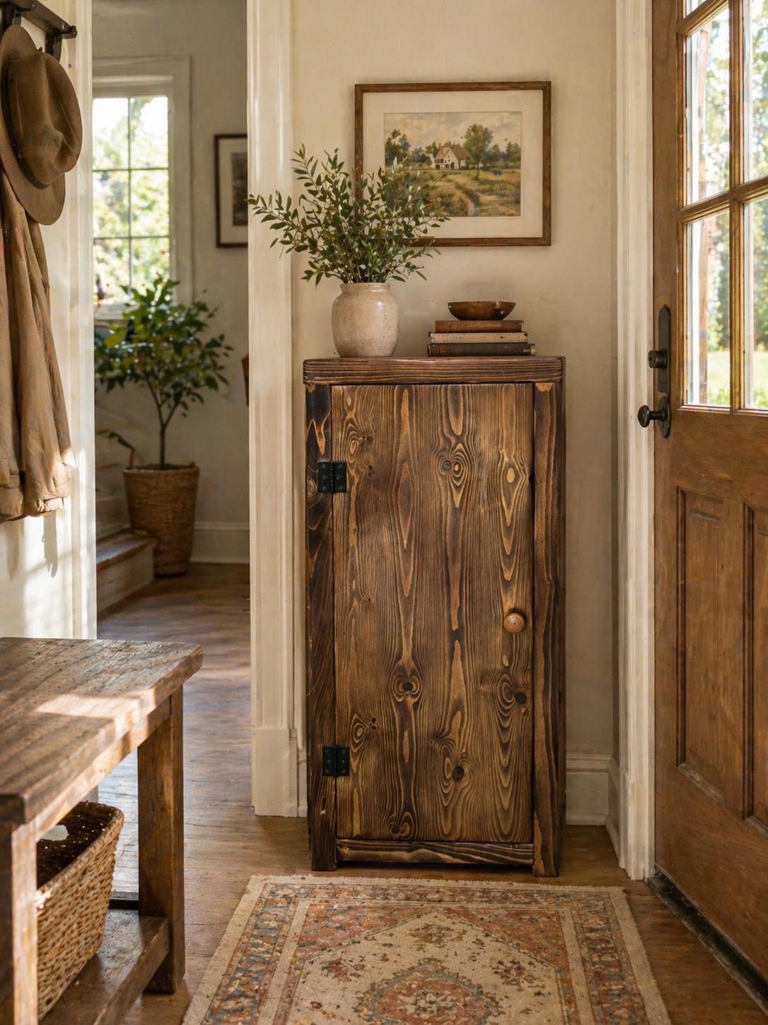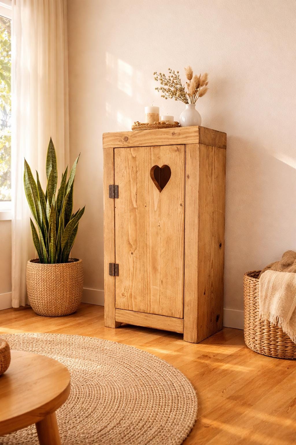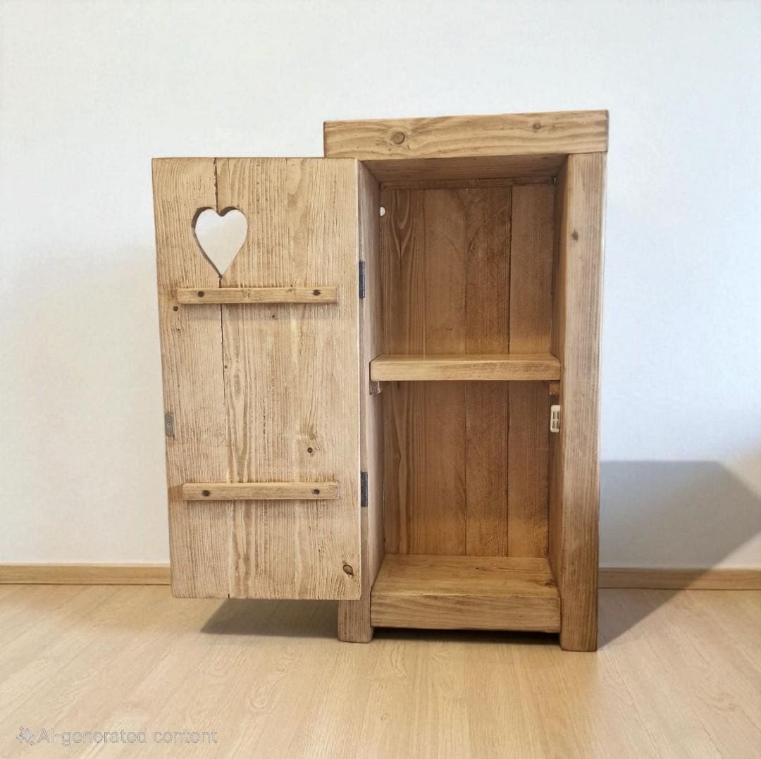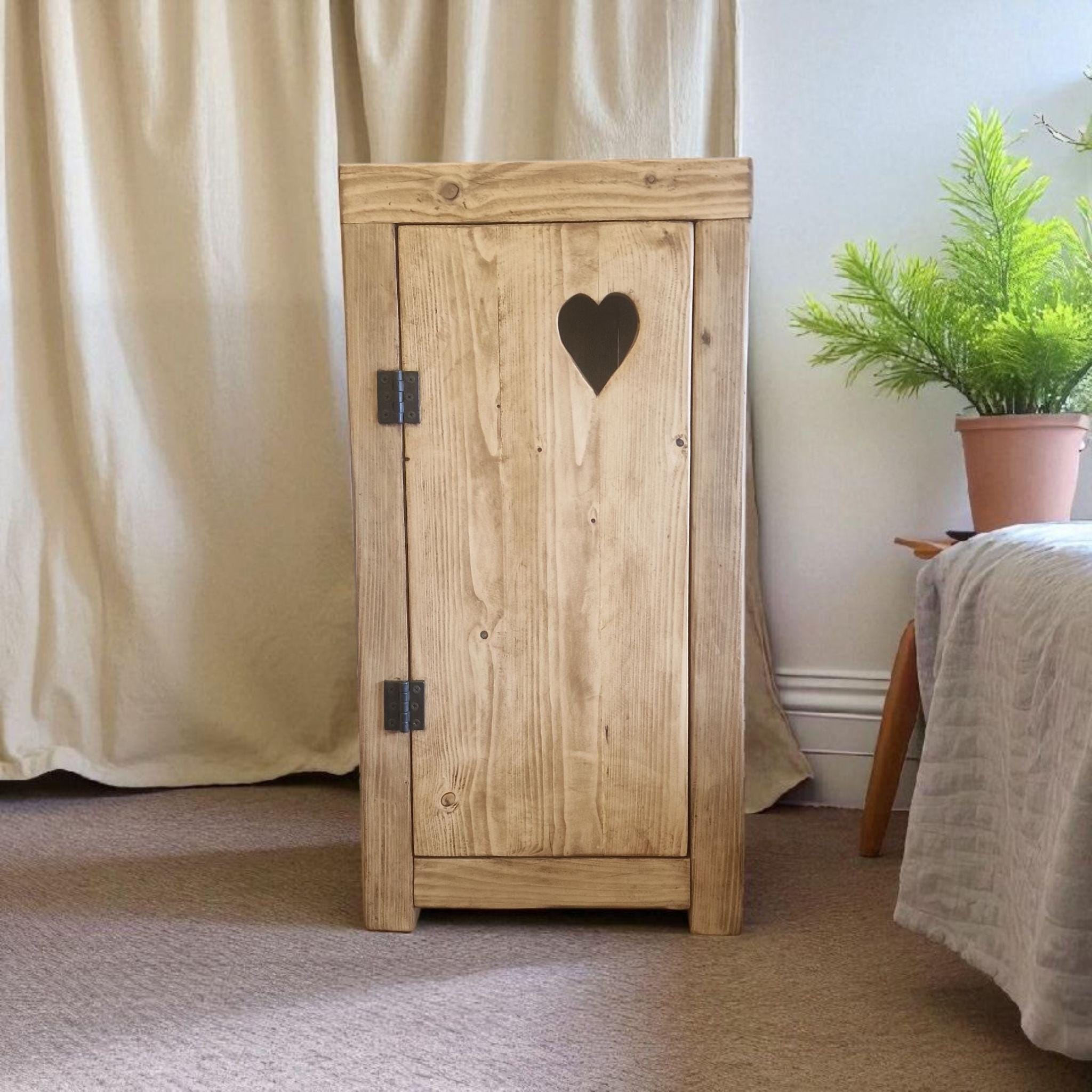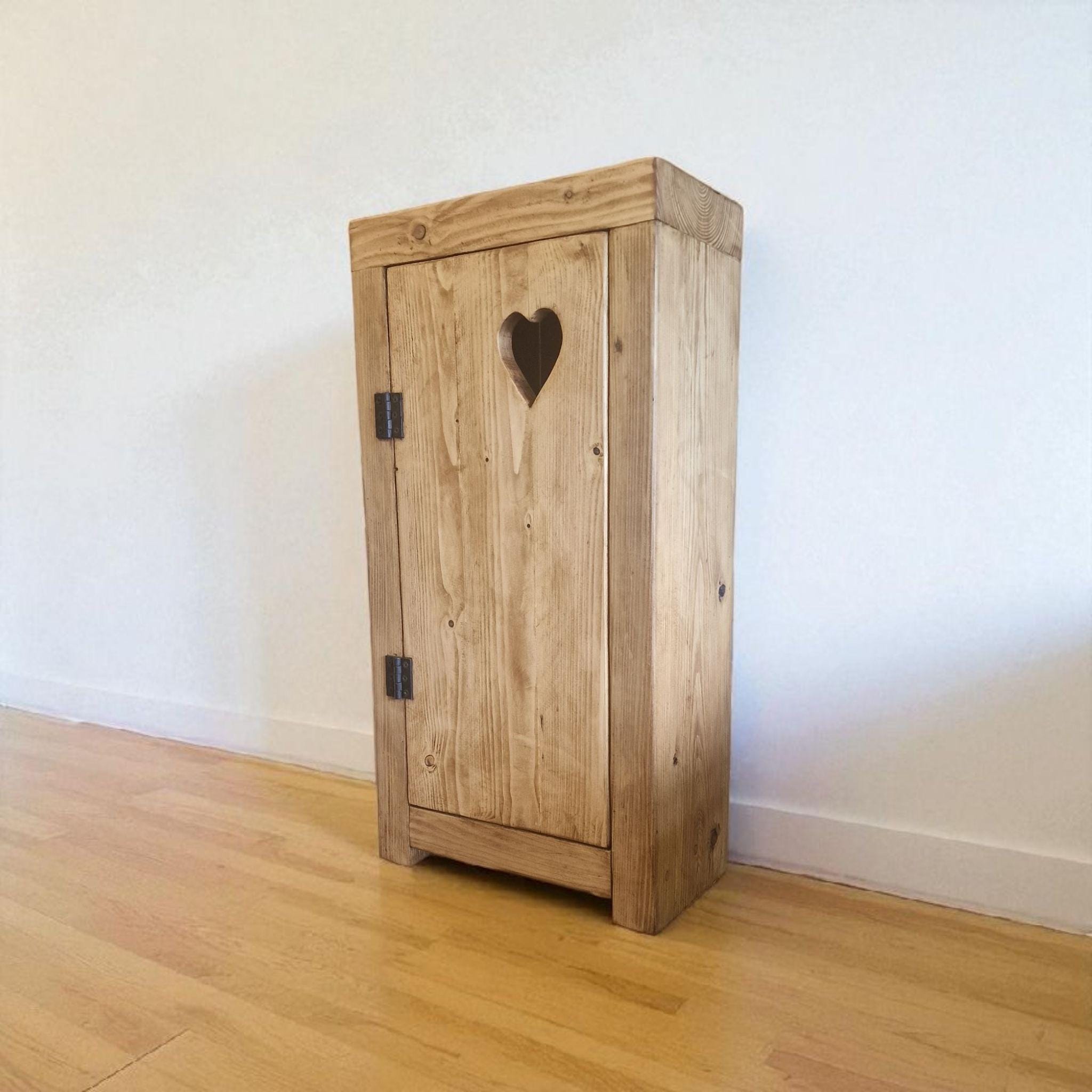 This beautiful cabinet (or nightstand) is crafted from reclaimed 45mm thick solid wood and finished with a high-quality wood wax, creating a sturdy and stylish piece full of rustic charm. the main carcass is made from 45mm thick solid wood, the door from standard 35mm scaffold board.