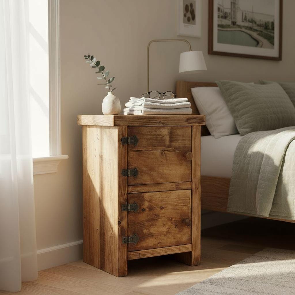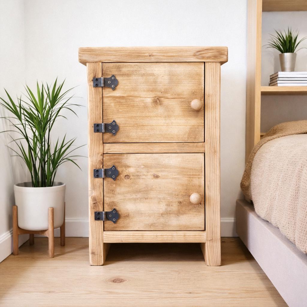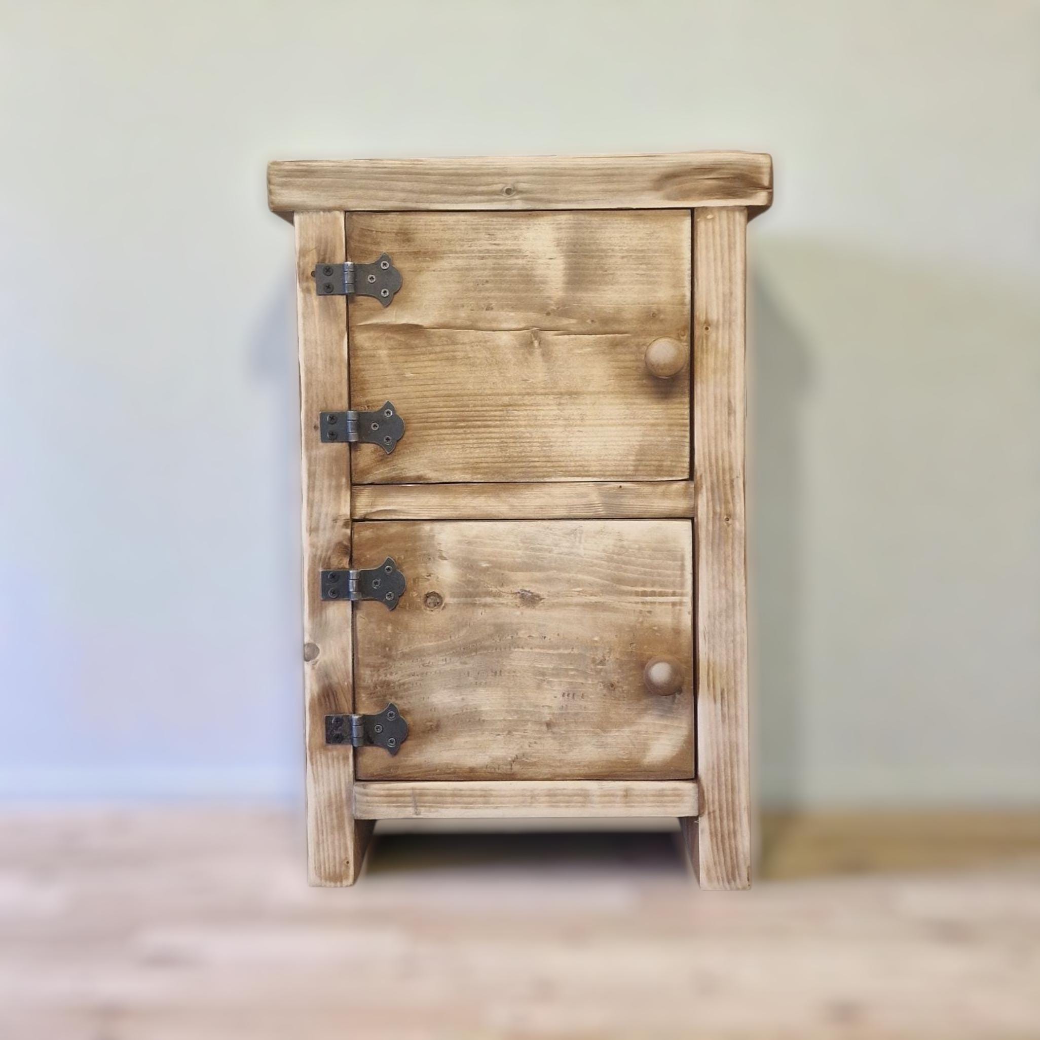 A Rustic Display Cabinet Occasional or Bedside Table made from Chunky Solid Wood.