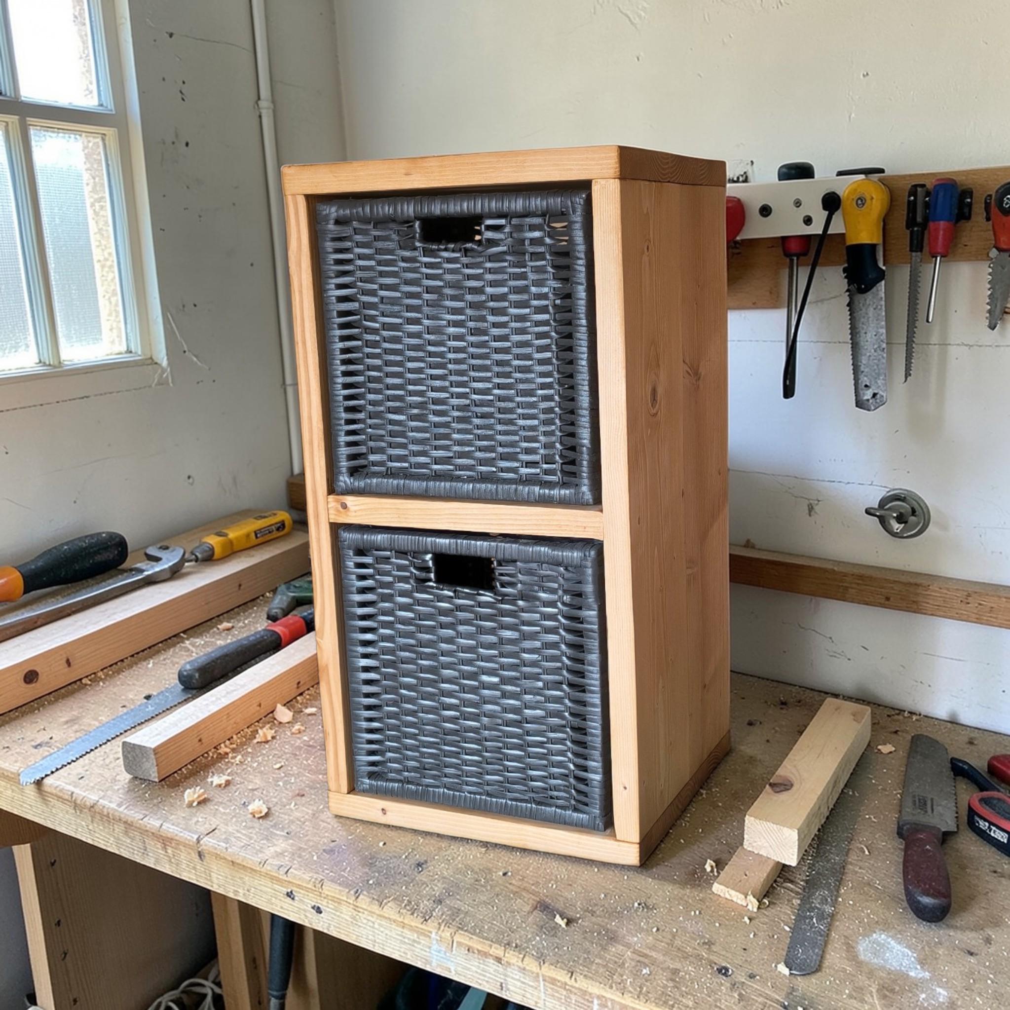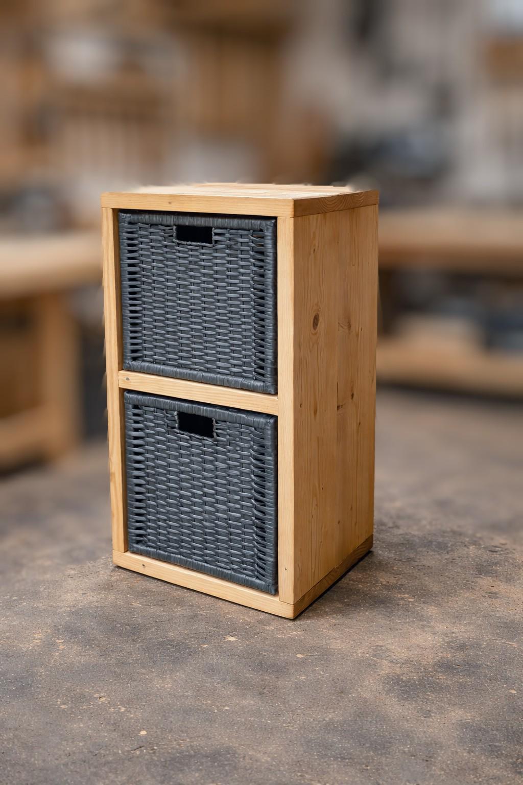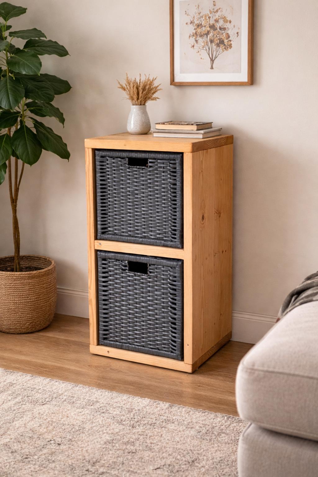 Solid Pine Storage Cabinet with Woven Baskets | Rustic Organizer for Small Spaces